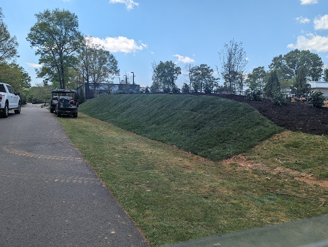 We are in our normal holding pattern for spring now. The fairways have greened up nicely but there will be no exciting amount bermuda growth for a bit, even with 90 in the forecast next week. The soil temperatures rise slowly, just as the water temperature does. Above 80 degrees makes it close to comfortable to jump in the pool and that is when the bermuda will start moving. We are hovering in the mid 60's right now. In the meantime enjoy the bouncy golf course and lack of rough! We were able to knock out our final bunker renovation of the season on Manakin this week. Joe and Sloan scrambled the guys on Monday and excavated the 20 year old sand and drainage out of 15 fairway bunker. At 2,800 square feet this is no small bunker. Two trucks with 18 yards of concrete total were laid out perfectly on Wednesday on top of the new drainage pipe and gravel. The guys are filling it up with new sand now. Between excavation and installing the new drainage, concrete and sand, over 100 trips ...