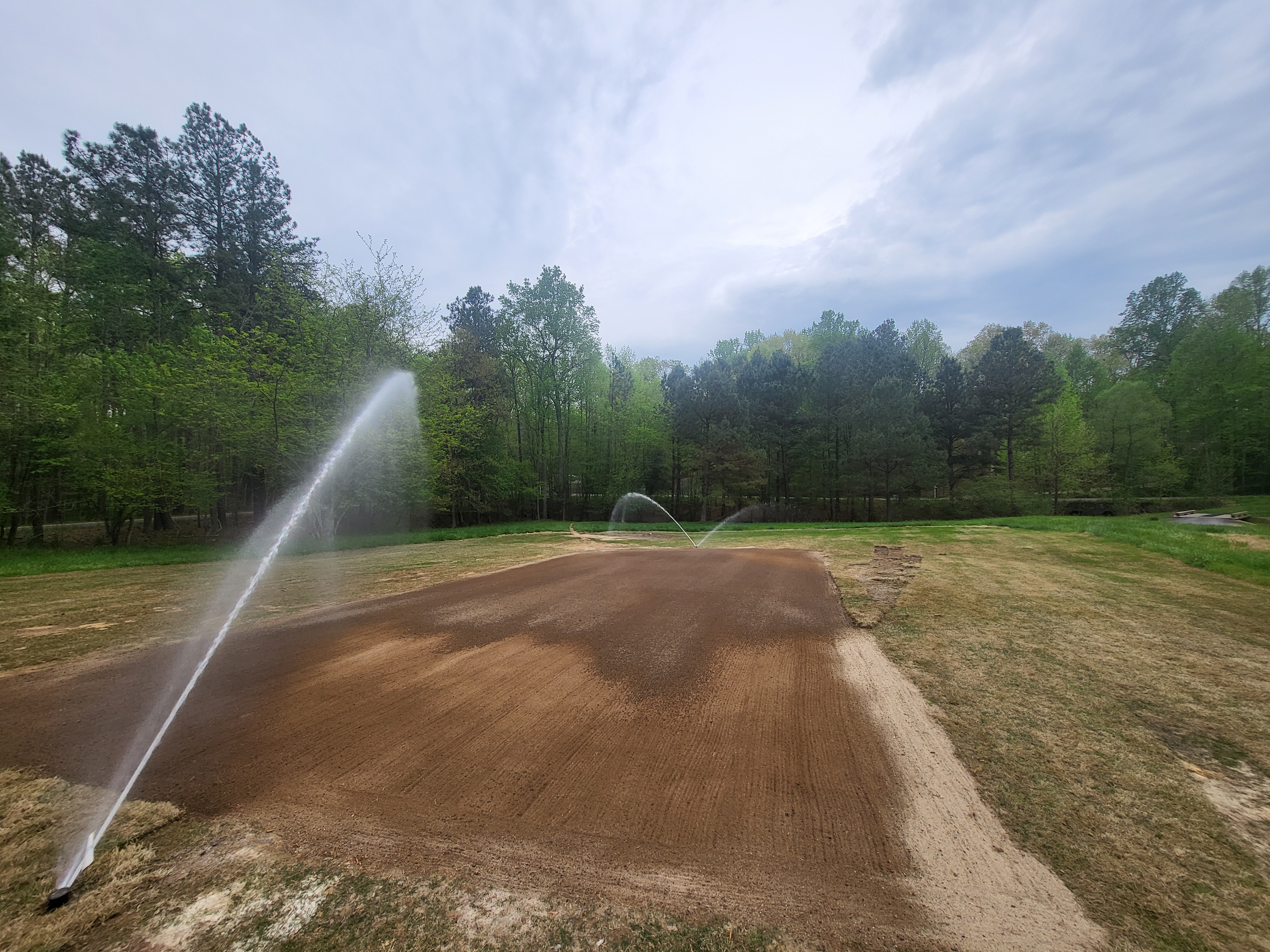 The new bentgrass nursery on 3 Sabot has been seeded. This area will be kept moist as we start to grow it in.